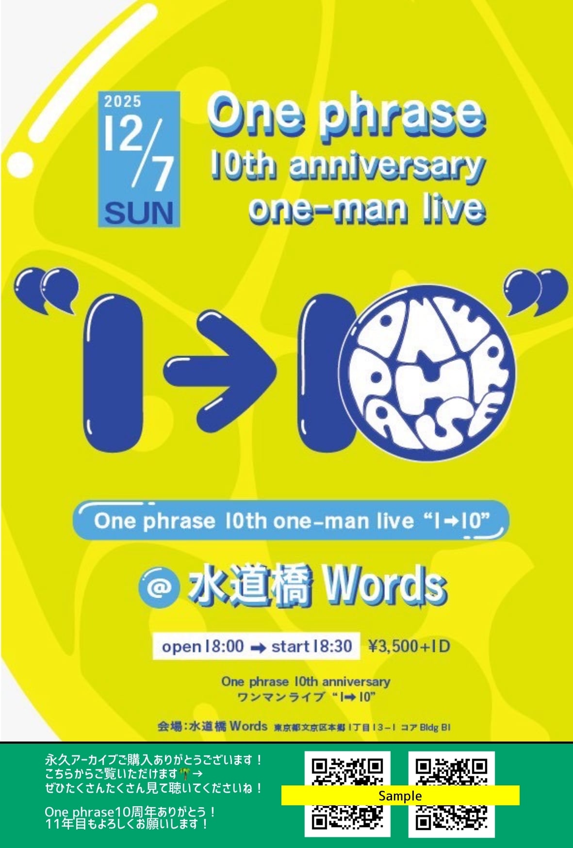One phrase 10th anniversary ワンマン "1→10"の